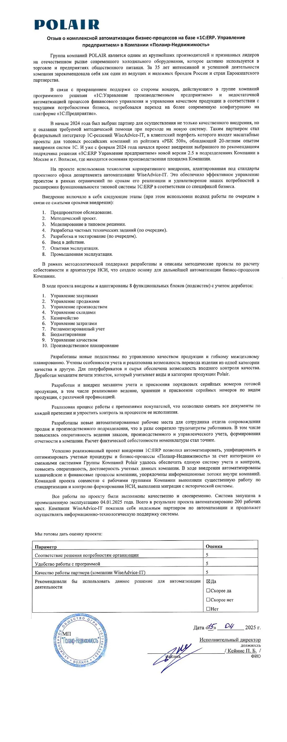 WiseAdvice-IT — федеральный интегратор 1С, объединяющий признанных экспертов с общим видением целей и желанием добиваться высоких результатов для наших заказчиков! Вместе мы гарантируем, что ваша система на базе 1С будет работать так, как надо, способствуя развитию вашего бизнеса.