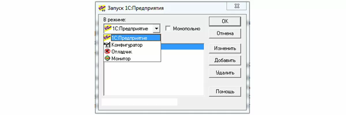 Все режимы запуска реализует один исполняемый файл 1cv7.exe – для сетевой (многопользовательской) версии, или 1cv7l.exe – для однопользовательской версии «1С:Предприятия» или 1cv7s.exe – для варианта «1С:Предприятие» для SQL.