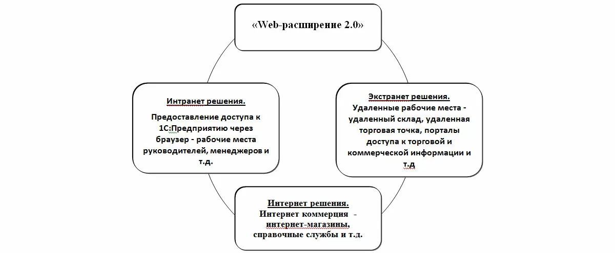 Интранет – система, предоставляющая удаленный доступ к информационным ресурсам через браузер. Примером могут служить 1С-решения – «Портал реализатора», «Удаленный склад».
