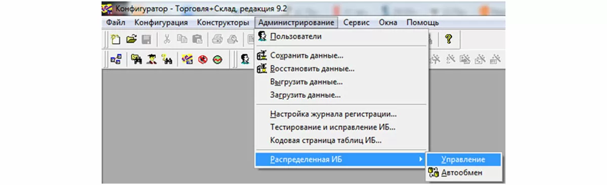 За работу этой компоненты отвечает библиотека DistrDB.dll в папке Bin программы «1С:Предприятие». Настройка РИБ в 1С 7.7 производится в конфигураторе меню в «Администрирование – Распределенная ИБ – Управление».