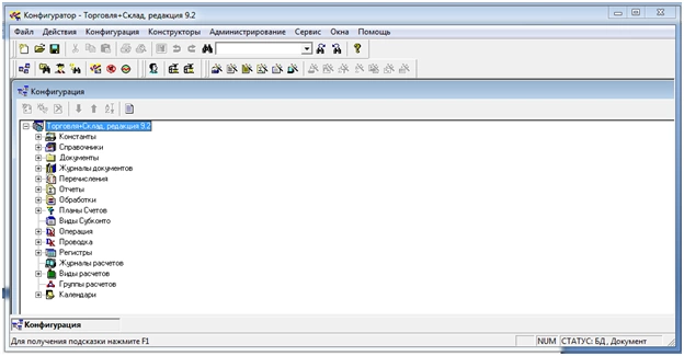Конфигуратор – режим администрирования и изменения конфигурации. Он используется для администрирования и разработки информационных баз, внесения изменений в типовую конфигурацию в соответствии с требованиями учета и отражения специфики учета. В этом режиме производится обновление программы, резервное копирование информационной базы, ее восстановление, тестирование на наличие и исправление ошибок и сбоев, работа с учетными записями пользователей и др.