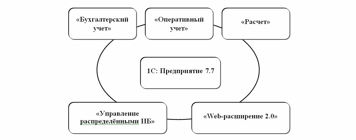 Компонента – это набор определенных функций, которые и определяют ее функциональность. Например, в компоненте «Бухгалтерский учет» предусмотрена возможность поддержки плана счетов и аналитического учета на каждом из счетов, возможность определять сальдо начальное, обороты за периоды, сальдо конечное и т.п. Она позволяет реализовать любую схему бухгалтерского учета и автоматизировать большинство его участков. Пример программы предназначенной для учета в хозрасчетных организациях, состоящих на бюджете, предназначена конфигурация «1С:Бухгалтерия для бюджетных учреждений 7.7» (в настоящий момент не поддерживается).