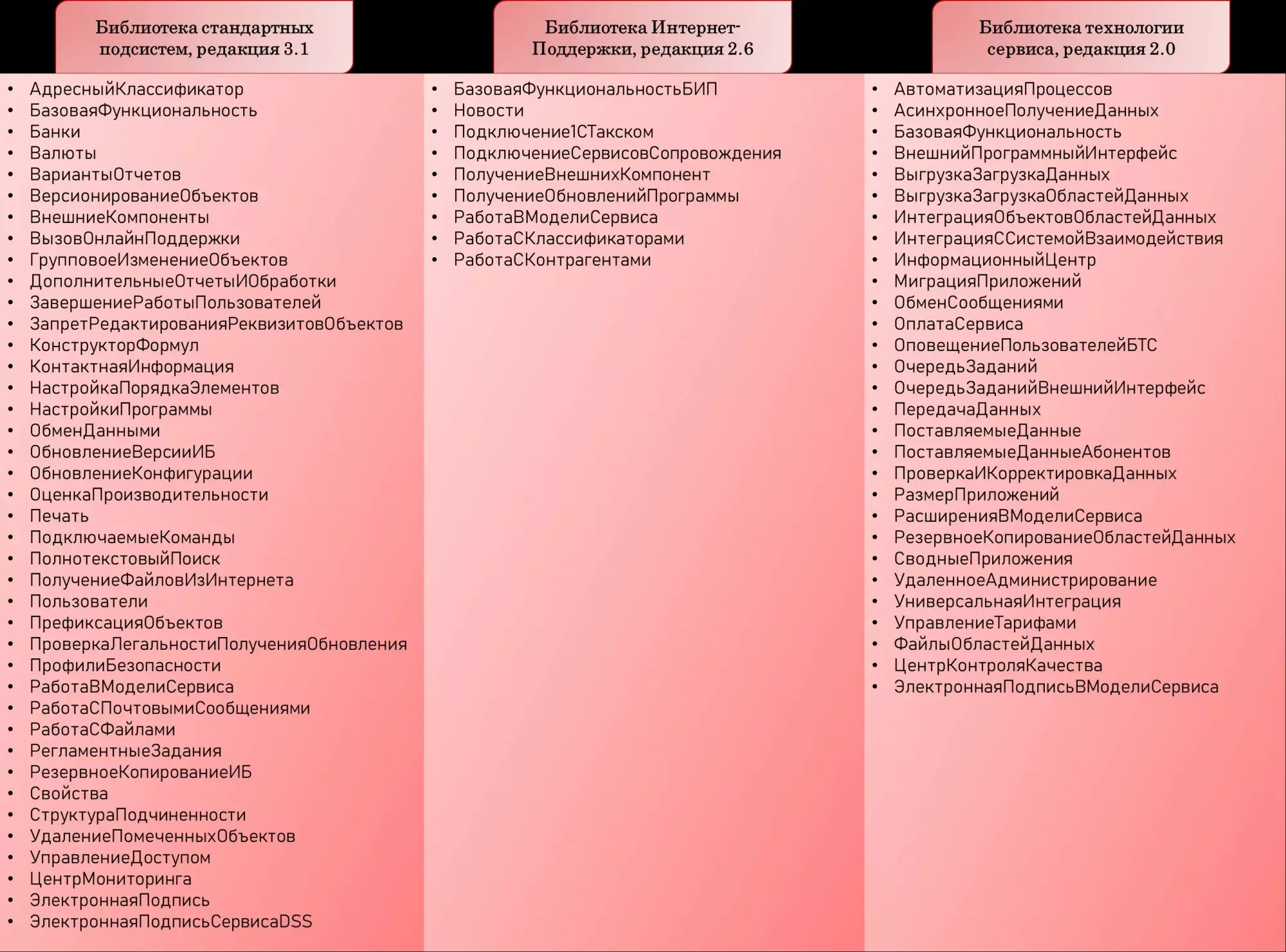 - 1С:Библиотека интернет-поддержки пользователей 8, версии 2.6.2;