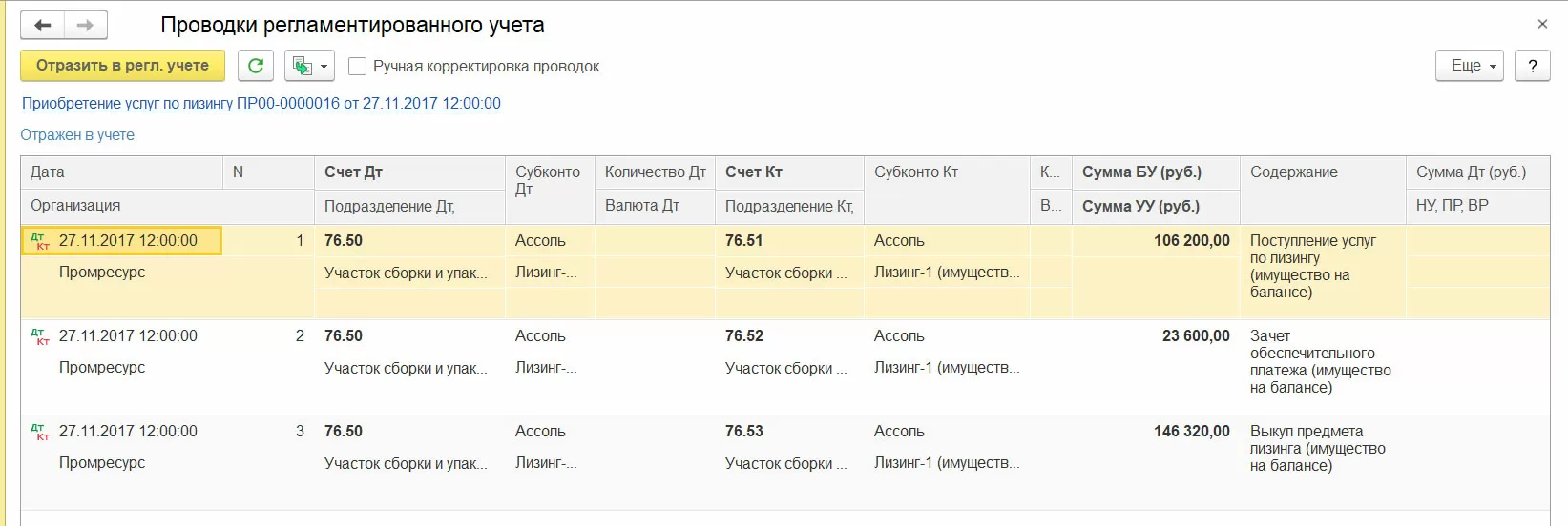 Учет лизинга в ERP 2.4 в регламентированном учете