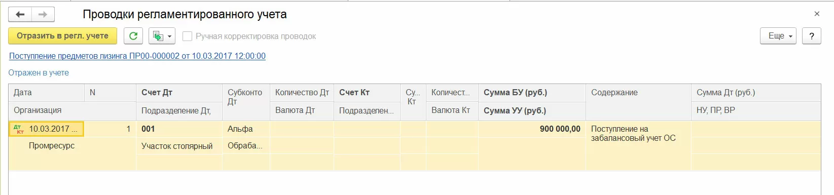 Учет лизинга ОС в регламентированном учете не затрагивает контур оперативного учета. Поэтому, если его необходимо учитывать в управленческом учете, то это возможно сделать при помощи следующих шагов: