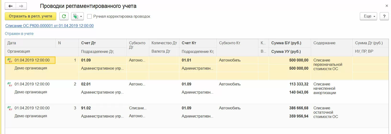 - С помощью документа «Отражение прочих доходов и расходов» провести начисление амортизации.