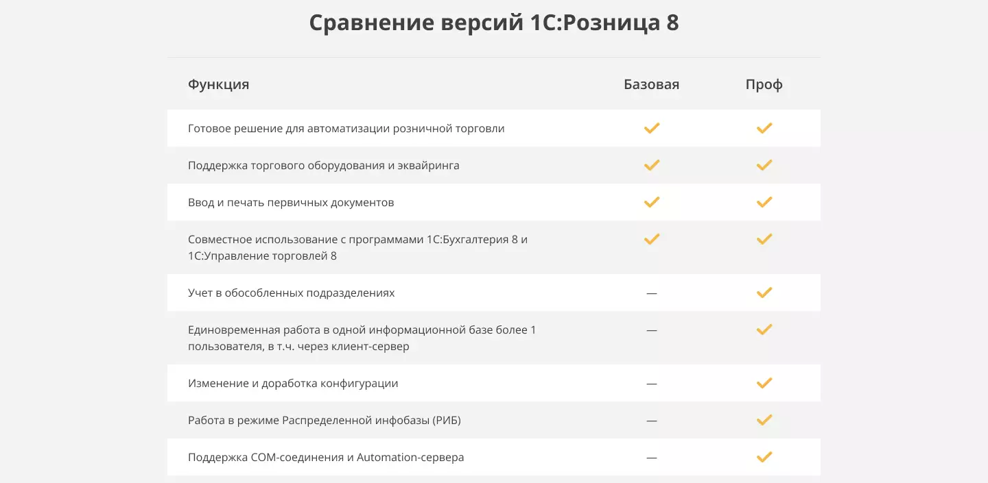 Основное отличие, чем Базовая версия отличается от ПРОФ – в такую конфигурацию нельзя вносить изменения и делать доработки. Если в процессе работы вам станет недостаточно стандартных возможностей базового варианта 1С:Розница, то расширить их будет невозможно.