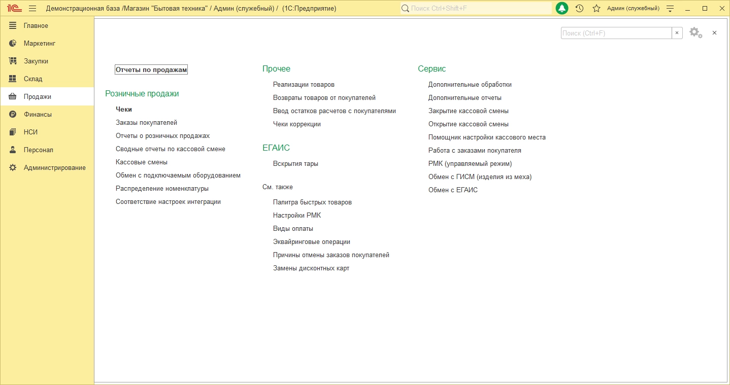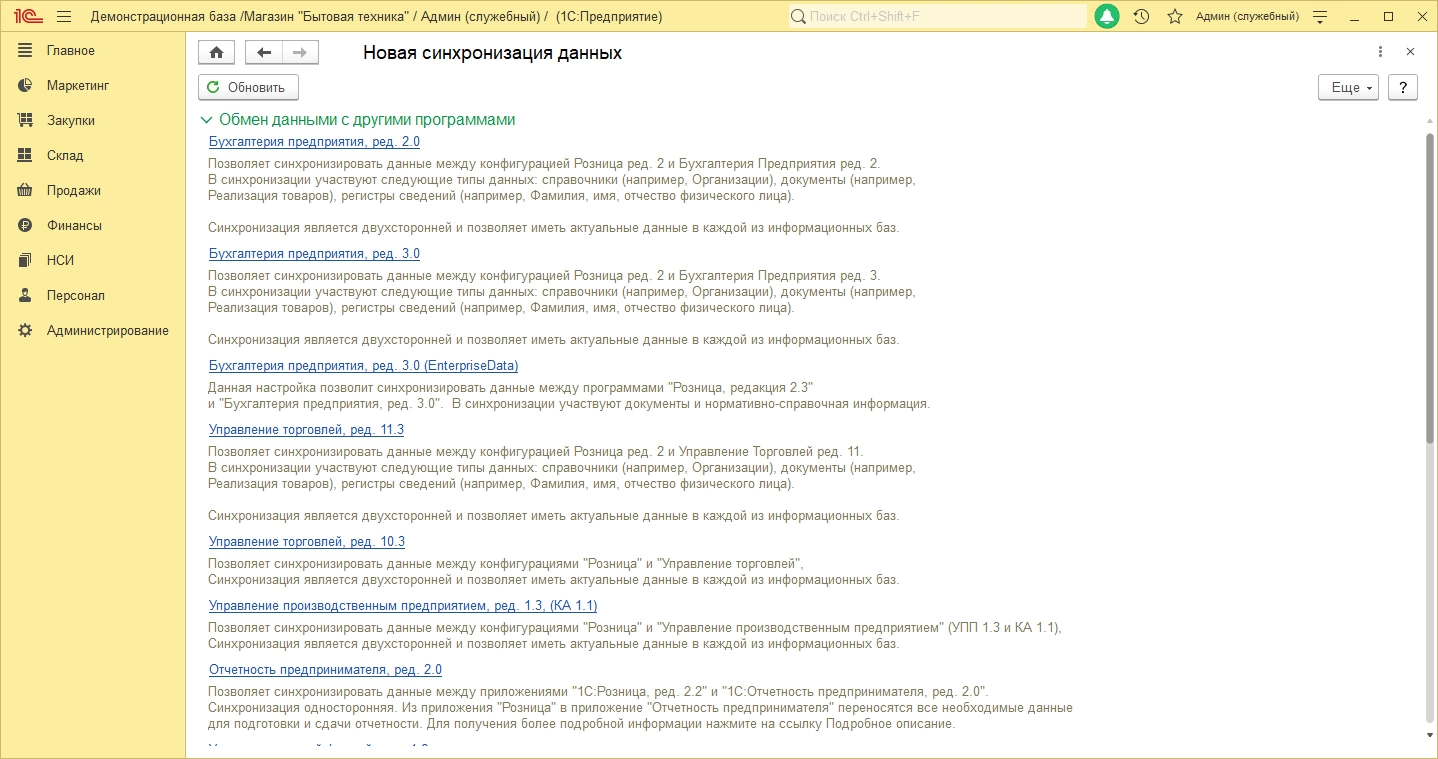 Последняя при совместном использовании с 1С:Розница выступает в роли мастер-системы, которая консолидирует нормативно-справочную информацию, управляет ценами и ассортиментом розничных магазинов. Из «Розницы» в нее отправляют данные о движении товаров, в том числе о розничных продажах в разрезе кассовых смен и документы учета платежных средств.