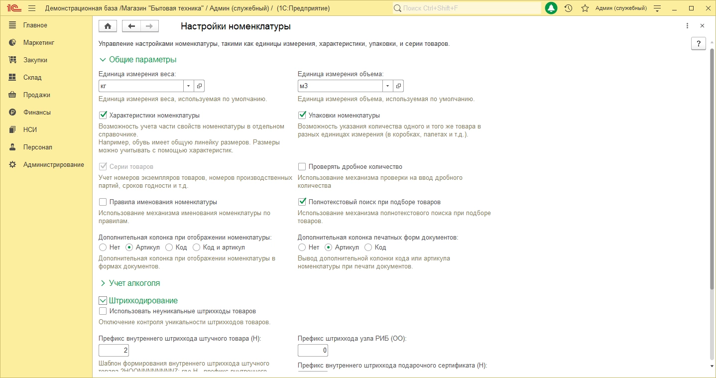 Учет алкогольной продукции и ведение операций закупки и продажи алкоголя подразумевает применение средств ЕГАИС – Единой государственной автоматизированной информационной системы, которая контролирует «движение» алкоголя в стране с 1 января 2016 года. Ее активируют через опцию «Алкогольная продукция» в «Настройках номенклатуры».