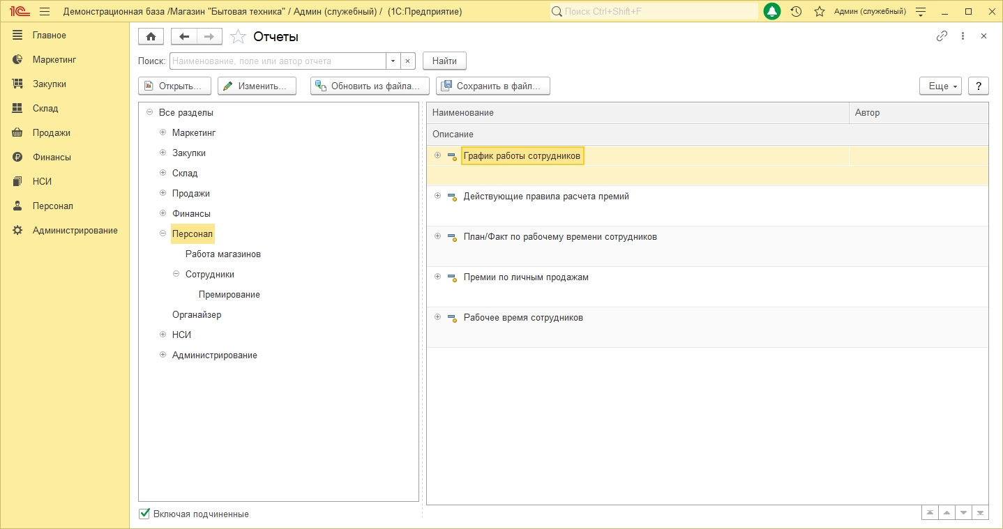 Программа 1C:Розница позволяет составлять и хранить информацию о сотрудниках, работающих или работавших на предприятии, а также данные о кандидатах, подавших заявки на открытые вакансии.