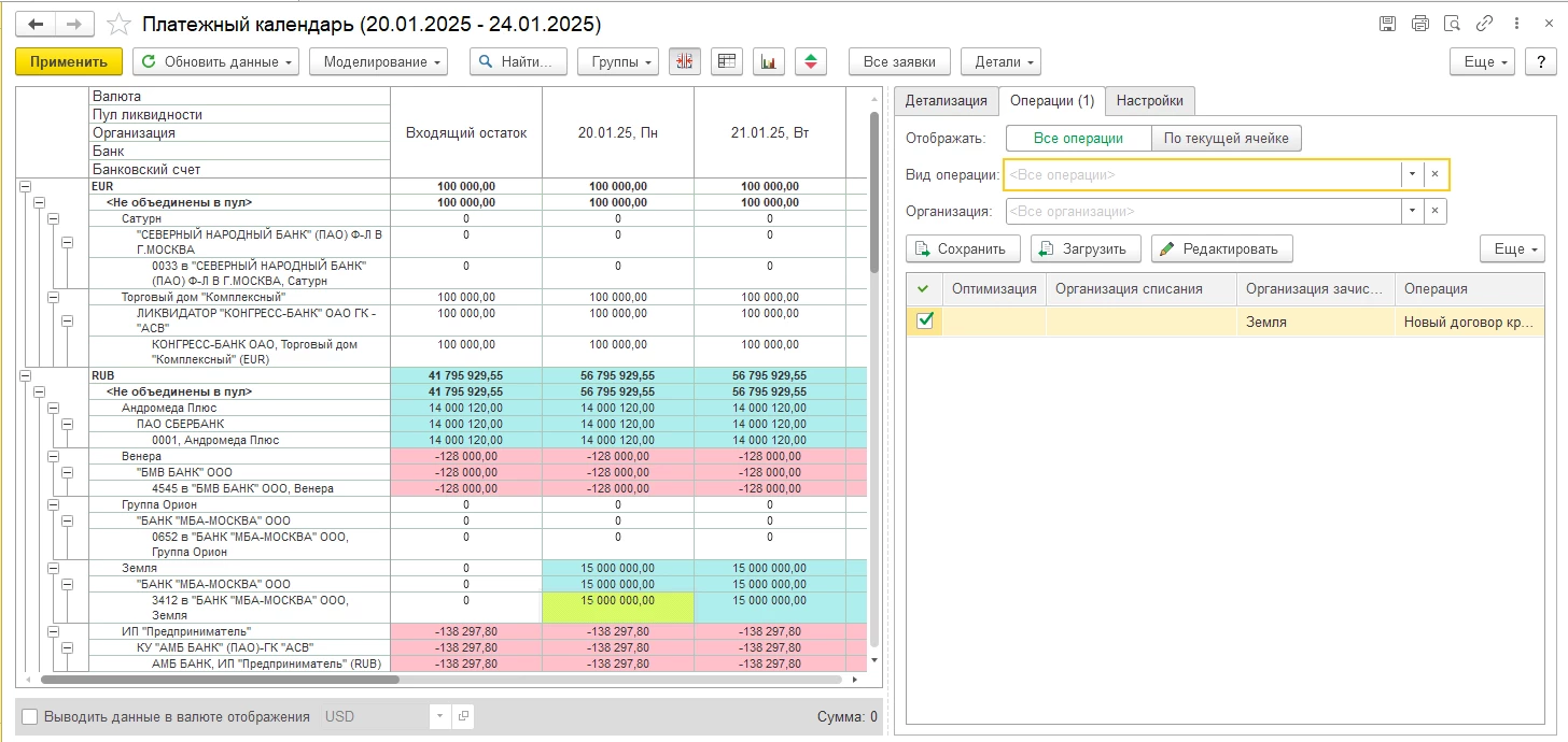 - Поддержка учета выданных кредитов, депозитов, минимальных неснижаемых остатков на счетах, а также других инструментов привлечения и размещения ликвидности;