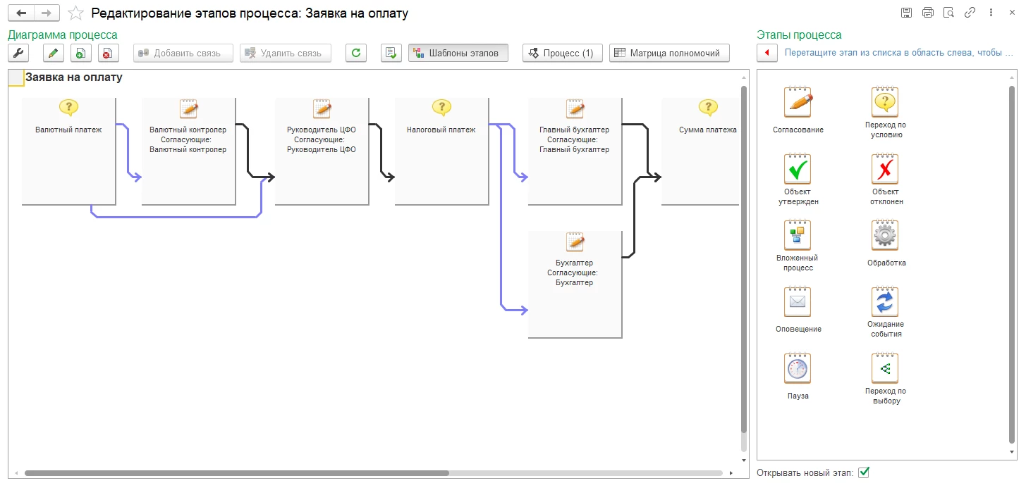 - Настраиваемые маршруты согласования позволяют учитывать сложные сценарии с параллельным и последовательным участием сотрудников.