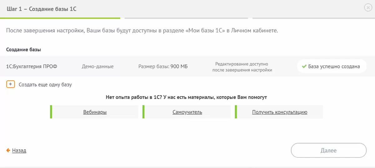 В облачном сервисе можно не только создать новую базу, но и перенести в него свою рабочую.