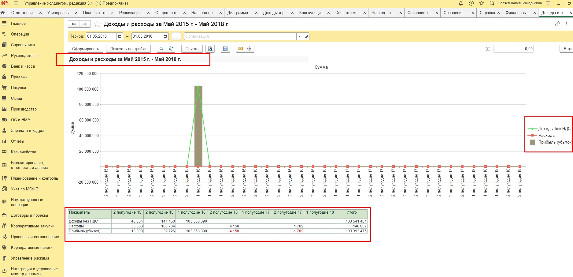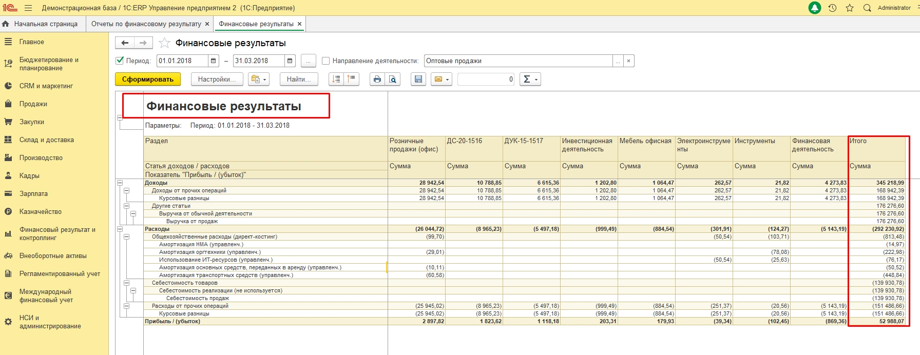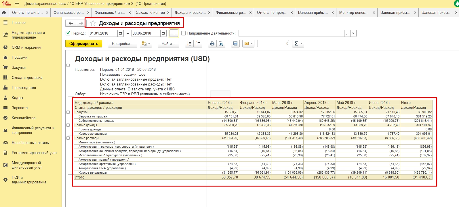 Данный отчет позволяет повести упрощенный и быстрый анализ по необходимым параметрам и периодам по каждому из направлений деятельности предприятия.