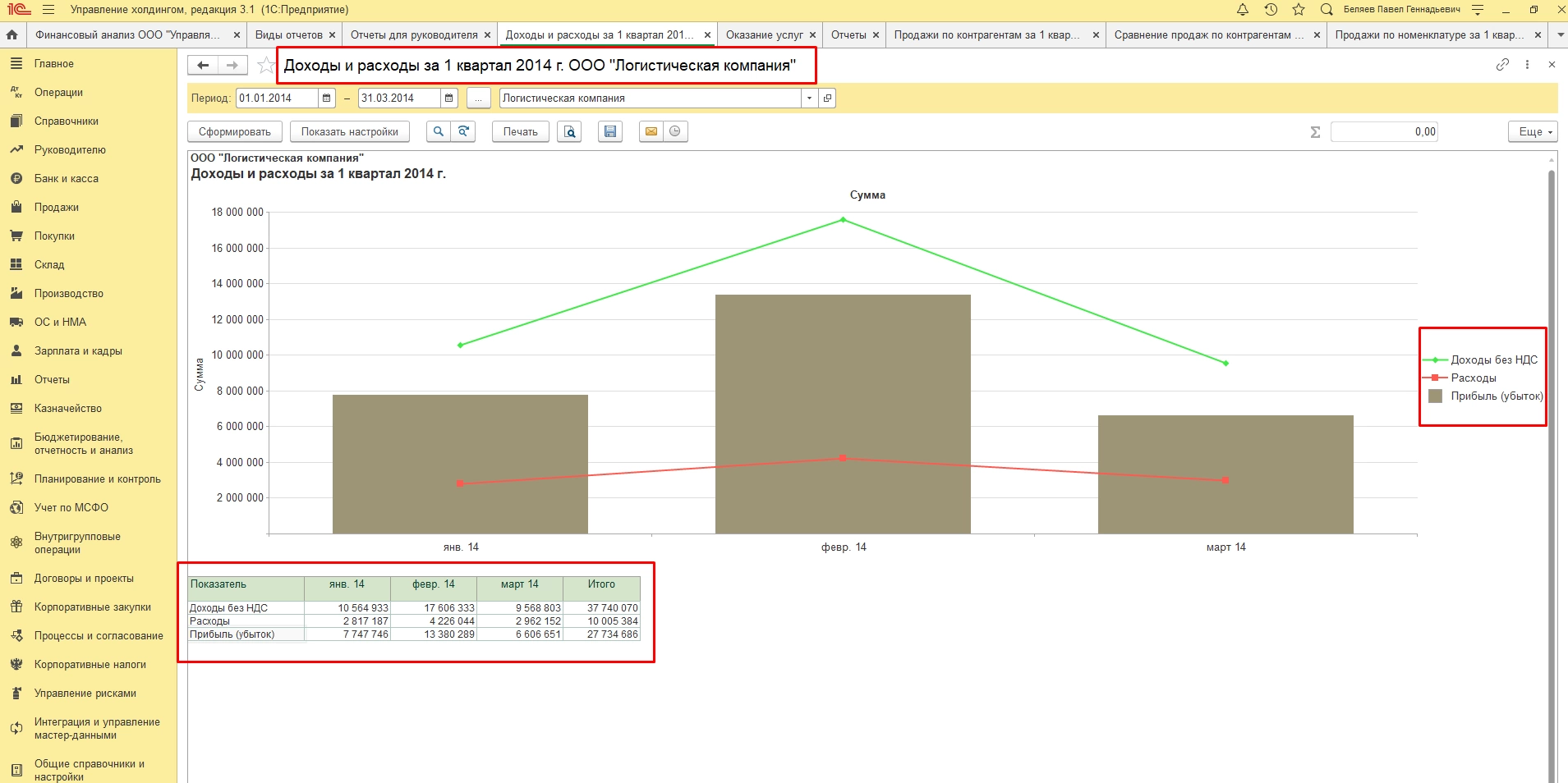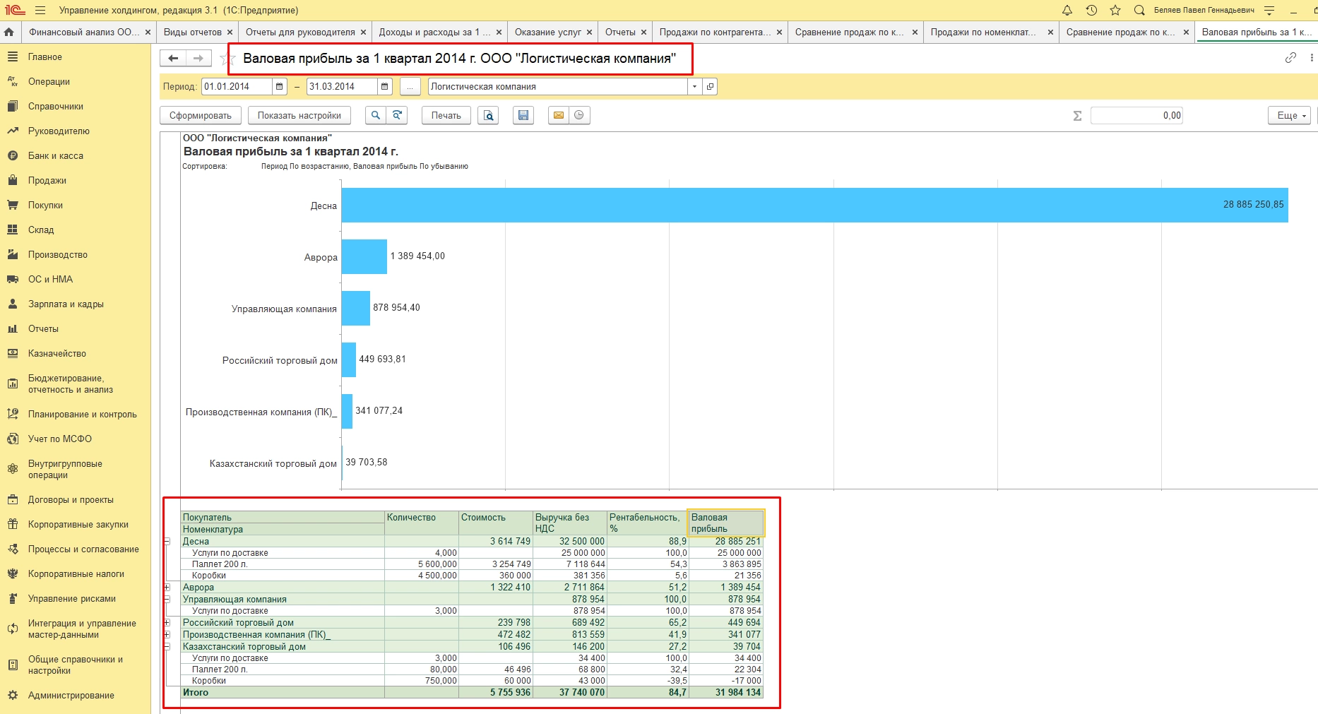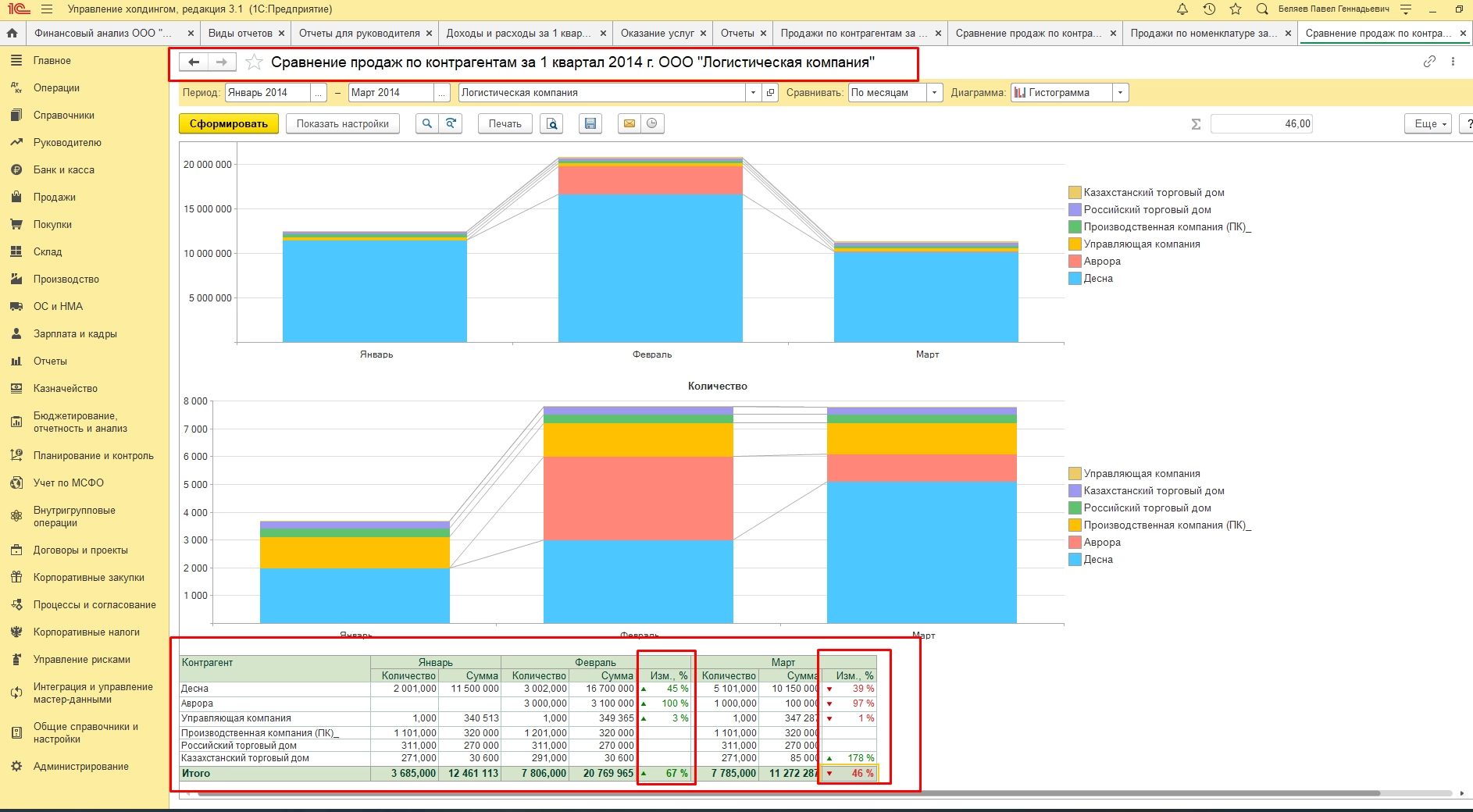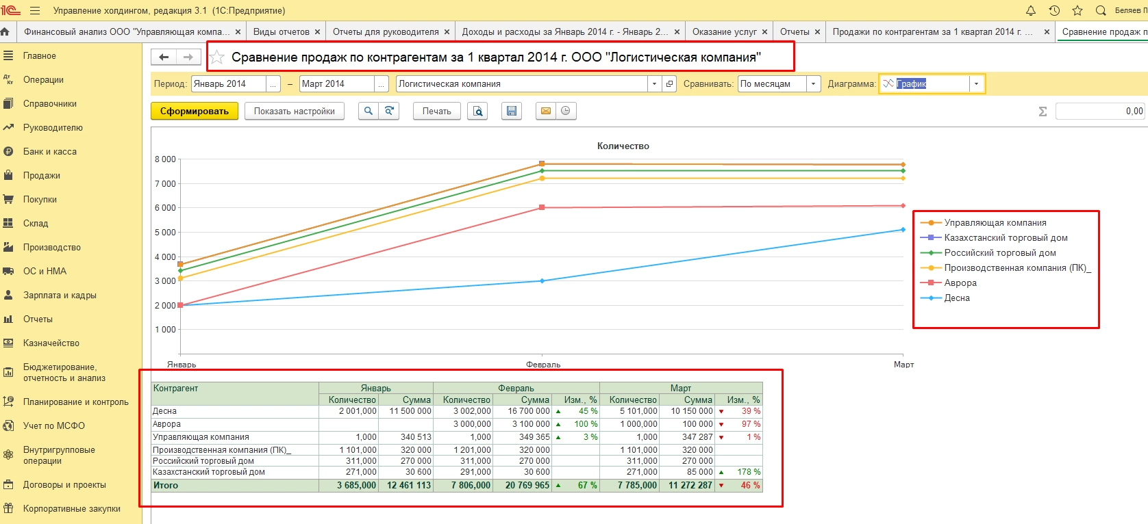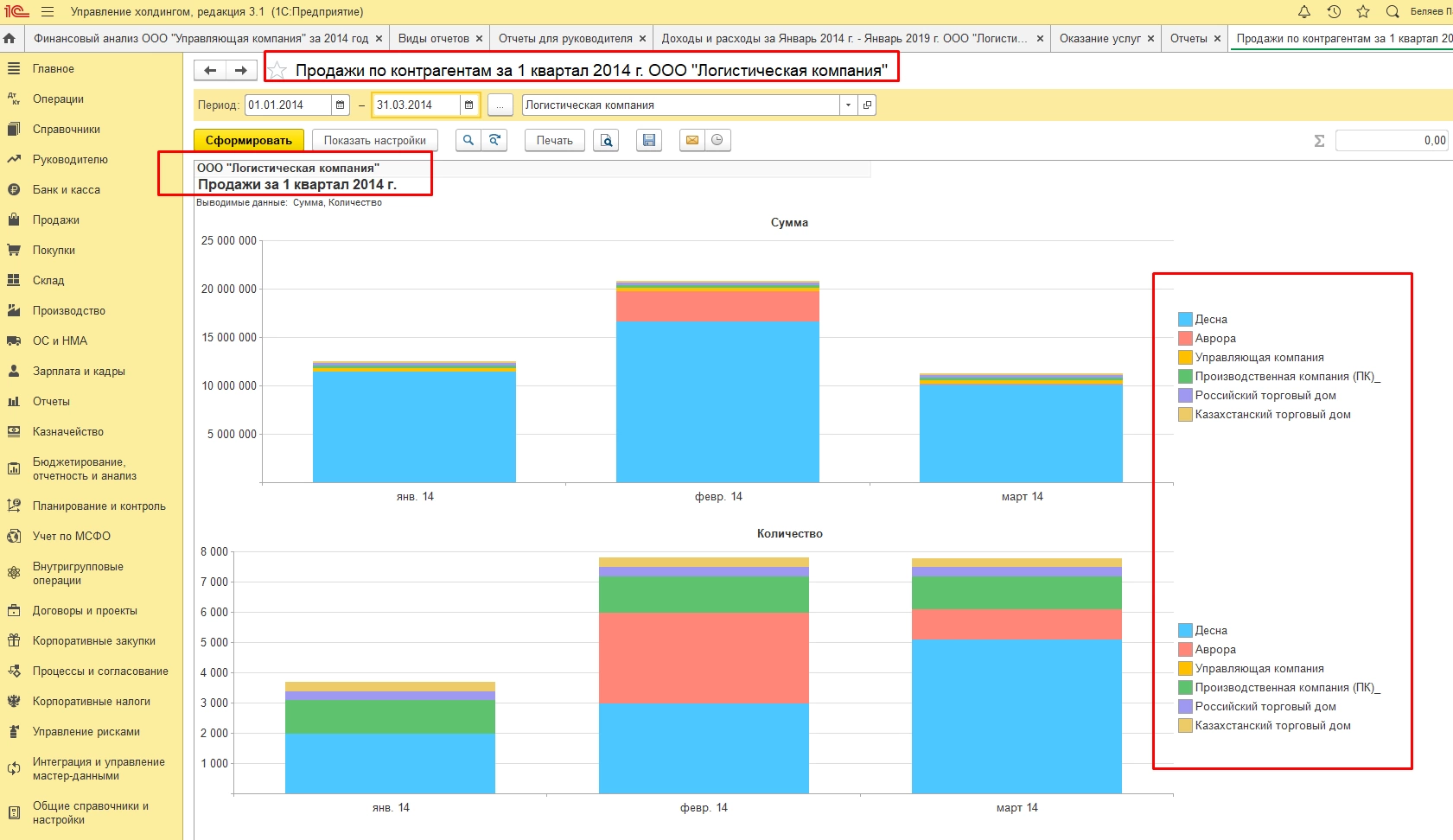 Например, можно сравнивать продажи по контрагентам и принимать решения о маркетинговых акциях и скидках для заказчиков.