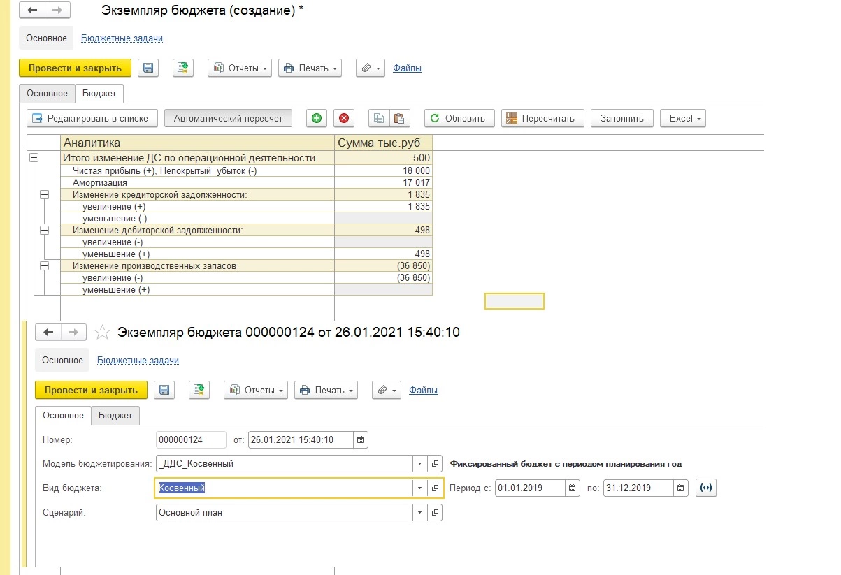 Заполнив ОДДС, мы поняли, что изменение величины ДС за период составило 500 т.р., что сопоставимо с данными бухгалтерии. Посредством подсистемы «Бюджетирования» можно планировать движение ДС и получать информацию о фактических данных, а также производить план-фактный анализ движения ДС. В 1С:УХ и 1С:Финансист предусмотрены аналогичные механизмы анализа ДДС косвенным методом – регламентированные отчеты в рамках подсистем бюджетирования и планирования.