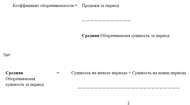 Коэффициент оборачиваемости = Продажи за период —————————————————— Оборачиваемая сущность за период
