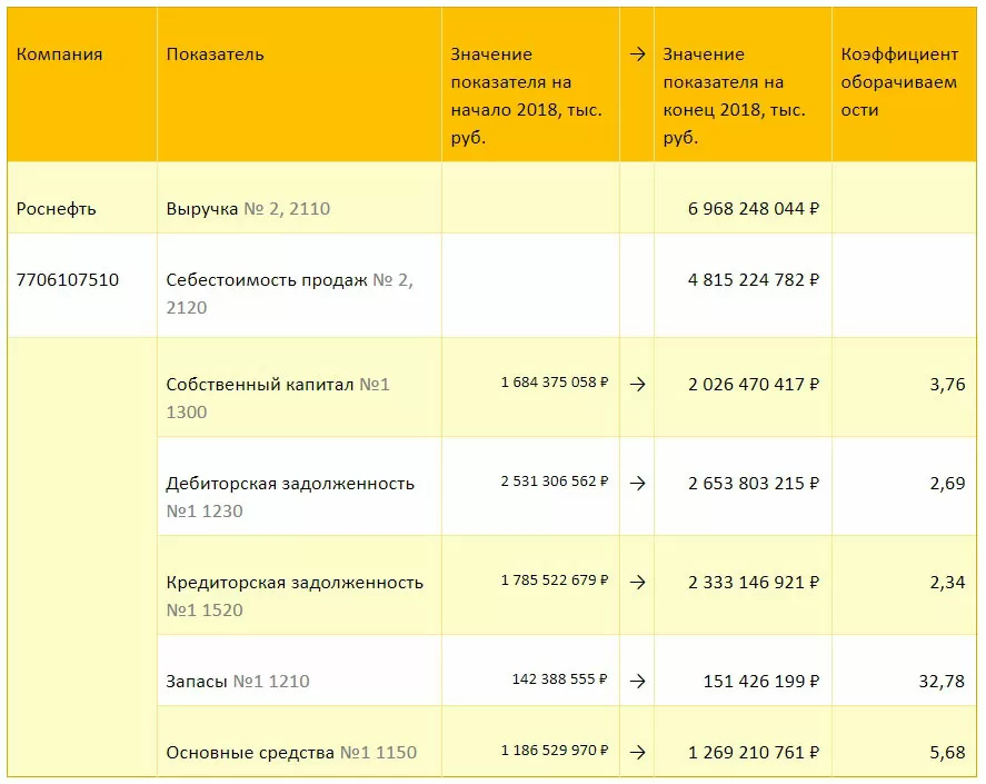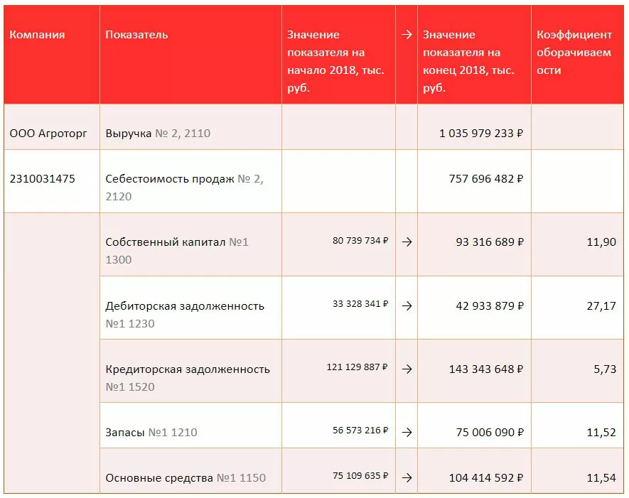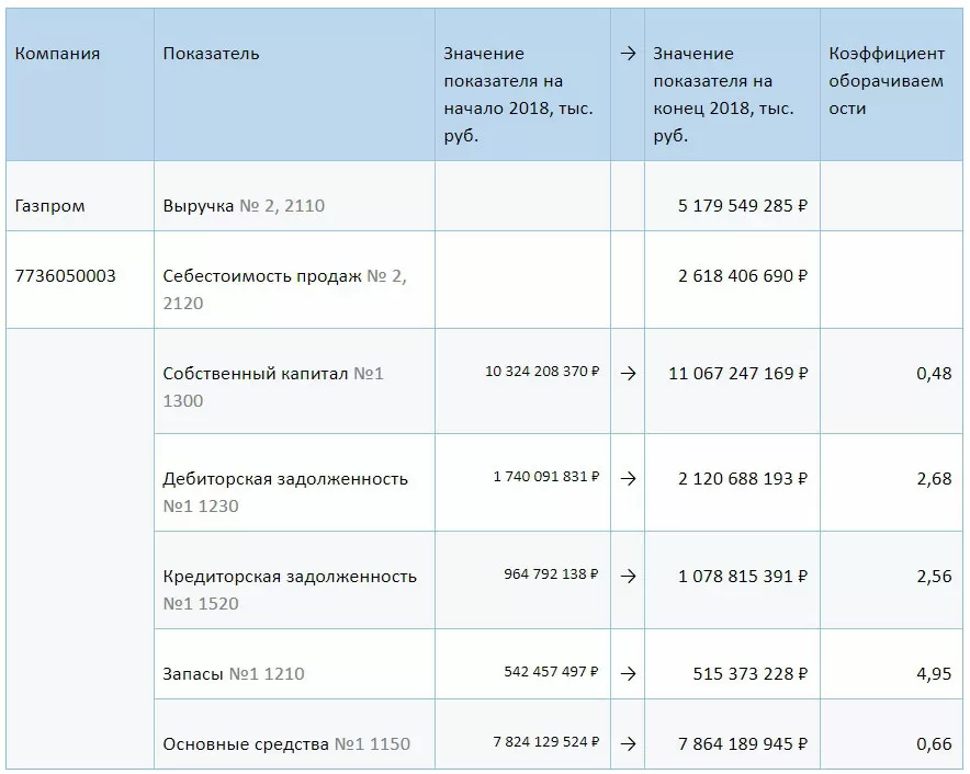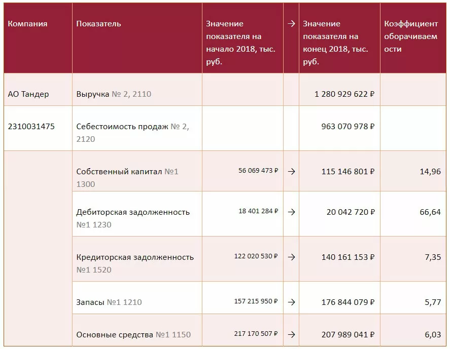 Отраслевые особенности и индивидуальная специфика бизнеса компаний не позволяют сформулировать нормативные показатели ни для одного из описанных в статье коэффициентов оборачиваемости. Например, торговое предприятие заведомо будет иметь оборачиваемость денежных средств выше, чем фондоемкое предприятие. Тем не менее, рассчитаем по формулам, приведенным в данной статье, коэффициенты оборачиваемости для некоторых предприятий по их бухгалтерской отчетности, доступной на сайте Федеральной службы государственной статистики: