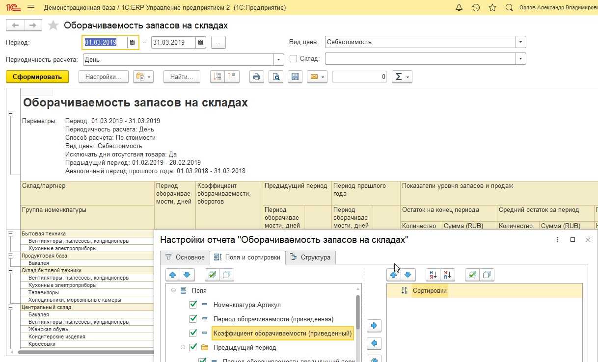 - Отчет по оборачиваемости запасов в 1С:ERP
