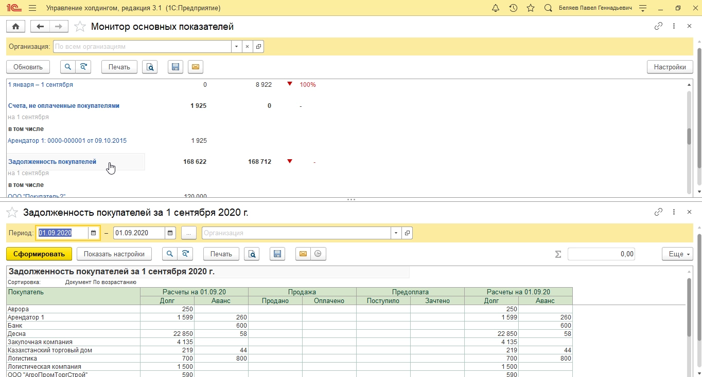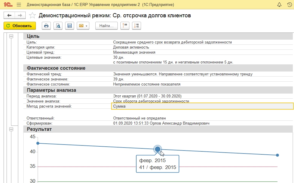 Монитор целевых показателей в 1С:ERP