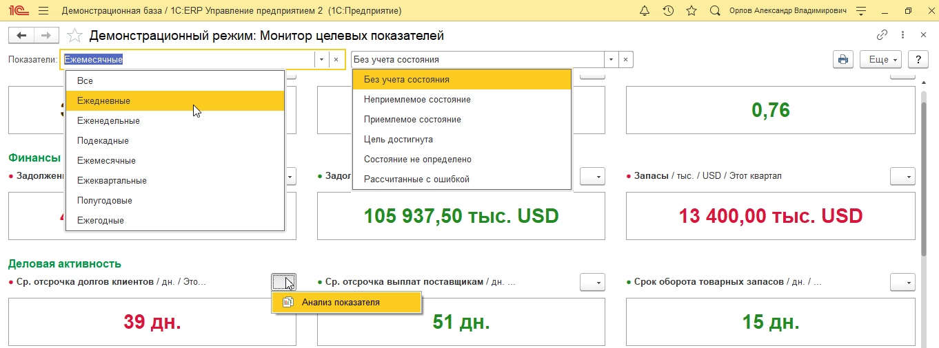 - Монитор целевых показателей в 1С:ERP