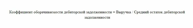 Формула для коэффициента оборачиваемости дебиторской задолженности: