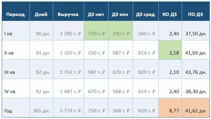 - Конкретное значение остатка дебиторской задолженности на единственный день начала длительного периода крайне плохо характеризует оборачиваемость дебиторской задолженности на протяжении всего года, зато очень хорошо влияет на годовой коэффициент оборачиваемости.
