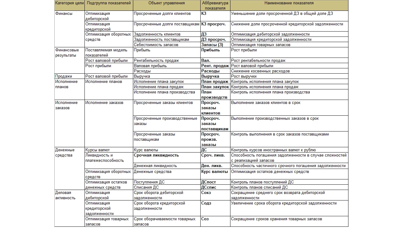 Способ формирования значения самого показателя определяется в типовом справочнике 1С:ERP «Структура целей».