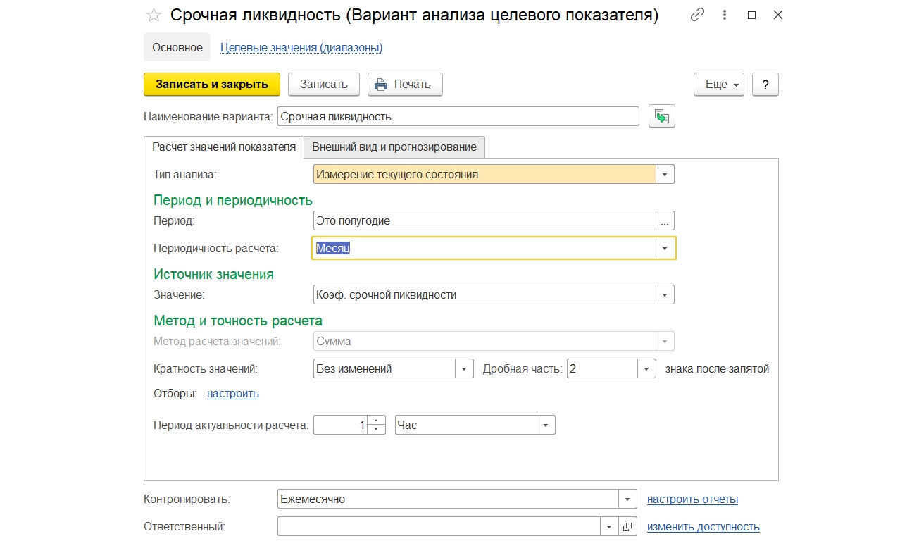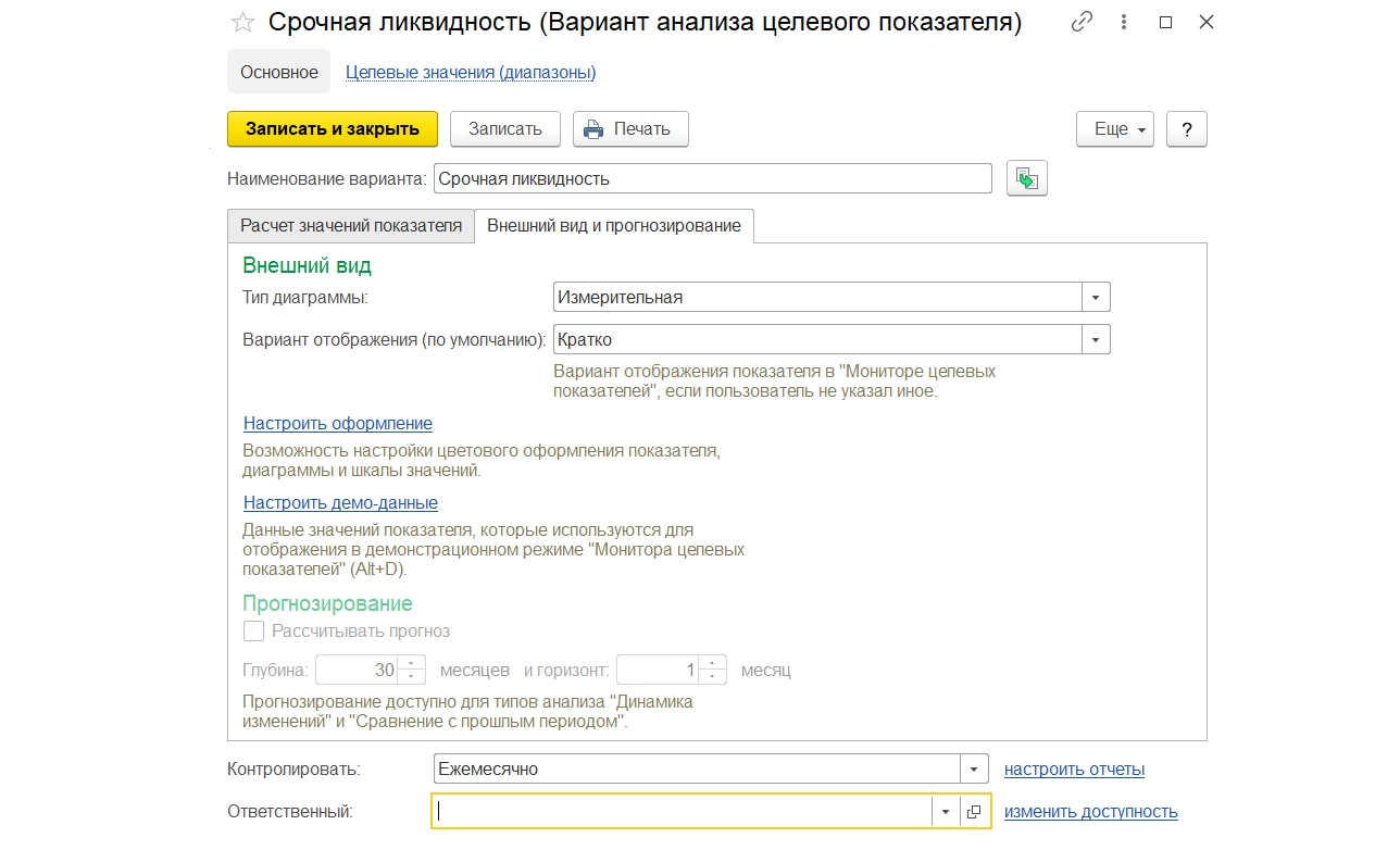 Настройка варианта отображения целевого показателя в справочнике «Варианты анализа целевых показателей»