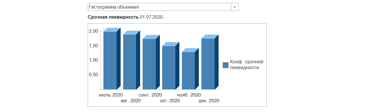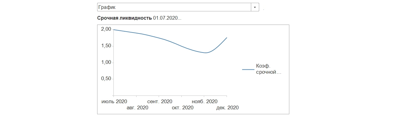 1С:ERP - инновационное решение для эффективного анализа финансовых результатовКоэффициент срочной ликвидности отражает способность компании погасить кредиторскую задолженность за счет собственных ликвидных активов.