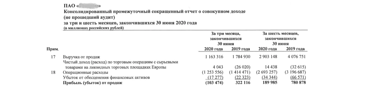 Показатель 0,71 говорит нам о том, что выручка компании упала на 28% по сравнению с аналогичным периодом 2019-го. Если посмотреть на строчку прибылей (убытков) от продаж, то можно увидеть, что динамика роста прибыли составила 0,24, то есть прибыль компании упала фактически более чем в 4-ре раза.