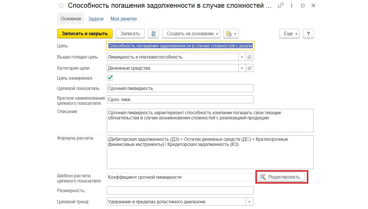 Тут же, по кнопке «Редактировать», можно внести изменение в правила формирования данного показателя.