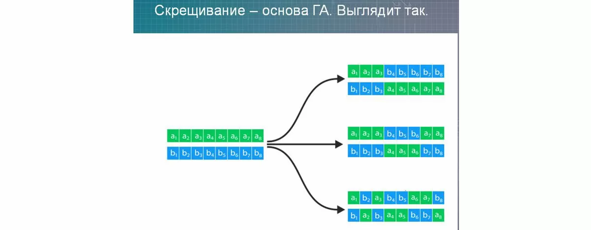 Наборы параметров перемешиваются, получая новые: вариант объезда a и b скрещивают – берут что-то из одного, а что-то из другого.