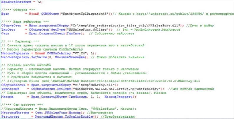 Заметим, что Matlab плохо работает с COM-объектами, генерируя «кривую» COM-библиотеку, которая должна на входе получать дополнительные параметры, а с такой библиотекой 1С работать не умеет. Поэтому в 1С лучше использовать .NET сборки.