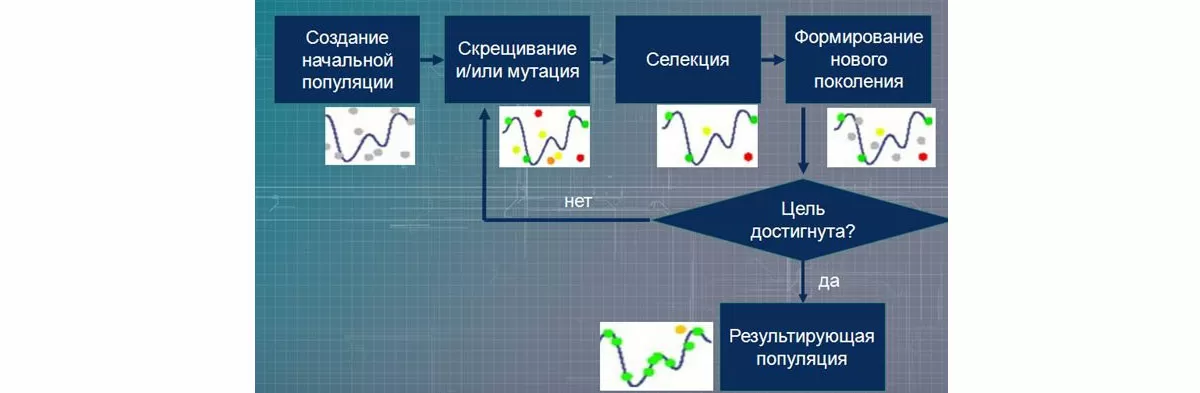 Первое, что хочется сказать про генетический алгоритм – это гораздо проще, чем кажется из названия: он не содержит структурных вычислений, многоуровневой логики или математических расчетов. Как правило – это 10 строчек кода, которые нужны, чтобы выбрать лучшую особь (любой набор параметров, которые у нас имеются) и сгенерировать случайным образом популяцию. Большего для нормальной работы такого алгоритма не требуется. В основе построения генетического алгоритма лежат несколько простых шагов.