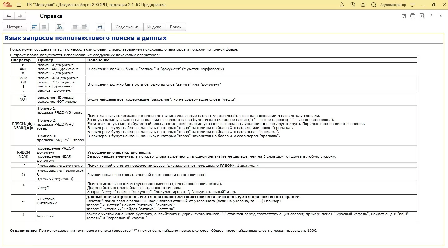 Функционал полнотекстового поиска похож на привычные поисковые запросы в интернет (Google, Yandex). Более того, также, как и в интернете, пользователь может формировать специальные поисковые запросы (например, чтобы определенные слова были рядом друг с другом, или поиск с учетом синонимов или даже ошибок).