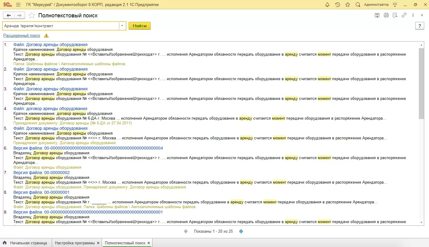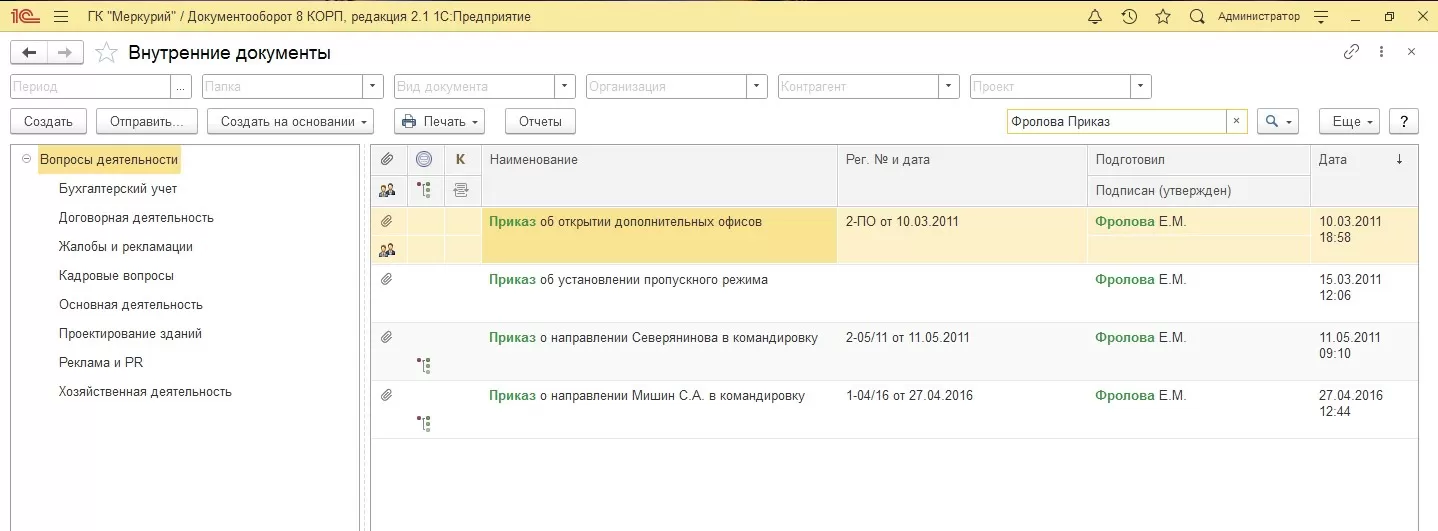 В программе 1С:Документооборот 8 КОРП есть мощные возможности для быстрого поиска и отбора документов.