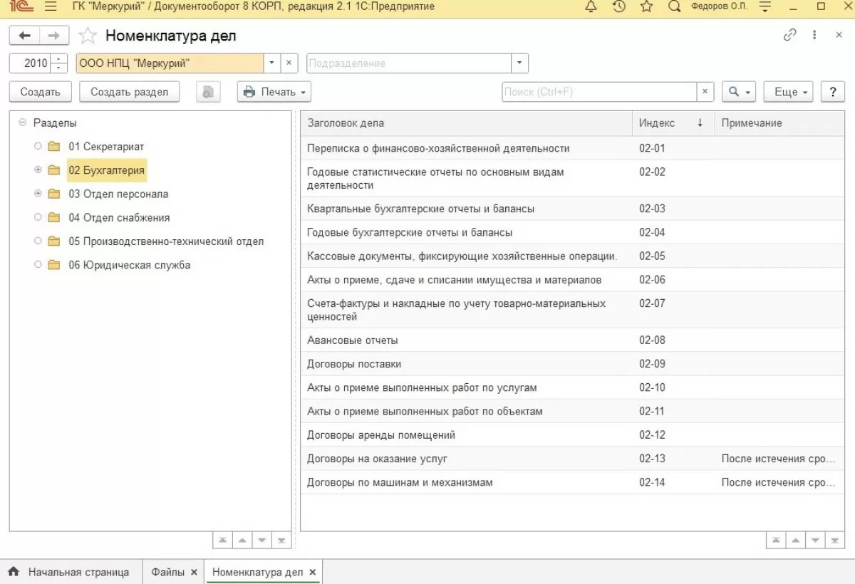 Номенклатура дел – это замечательный функционал программы 1С:Документооборот 8 КОРП, который позволяет связать документы в электронном виде и документы, которые все еще должны оставаться на бумажном носителе и, как правило, хранятся в специальных папках у делопроизводителей или в подразделениях.