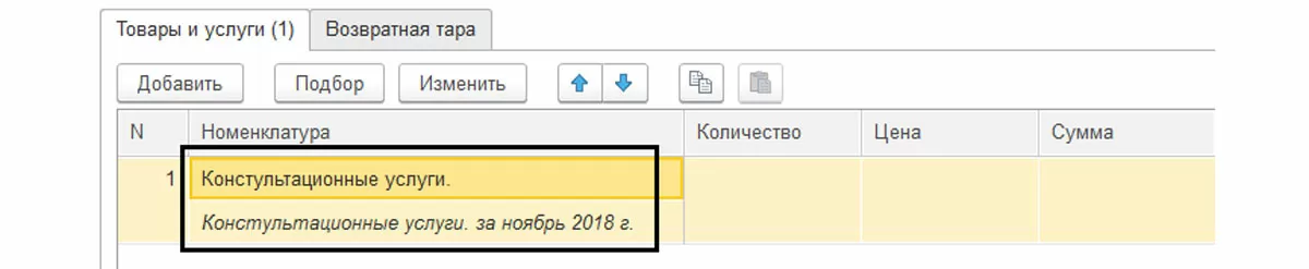 Если мы его заполним, указав периодичность услуги, то она будет указана в содержание документа.