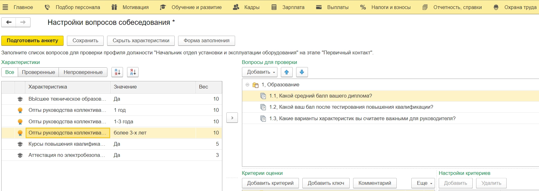 - Проведение электронного интервью дает возможность создавать анкеты с вопросами для оценки компетенций кандидатов, а также сравнивать их результаты между собой.