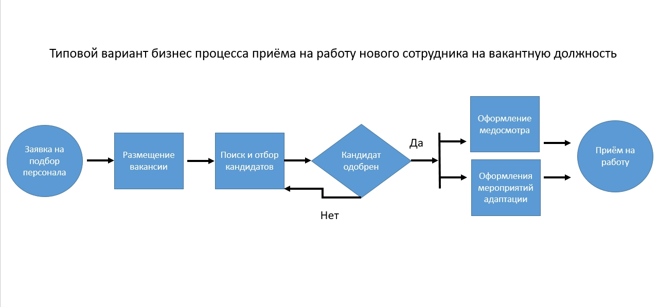 После оформления приема на работу сотрудника, данный бизнес-процесс завершается.