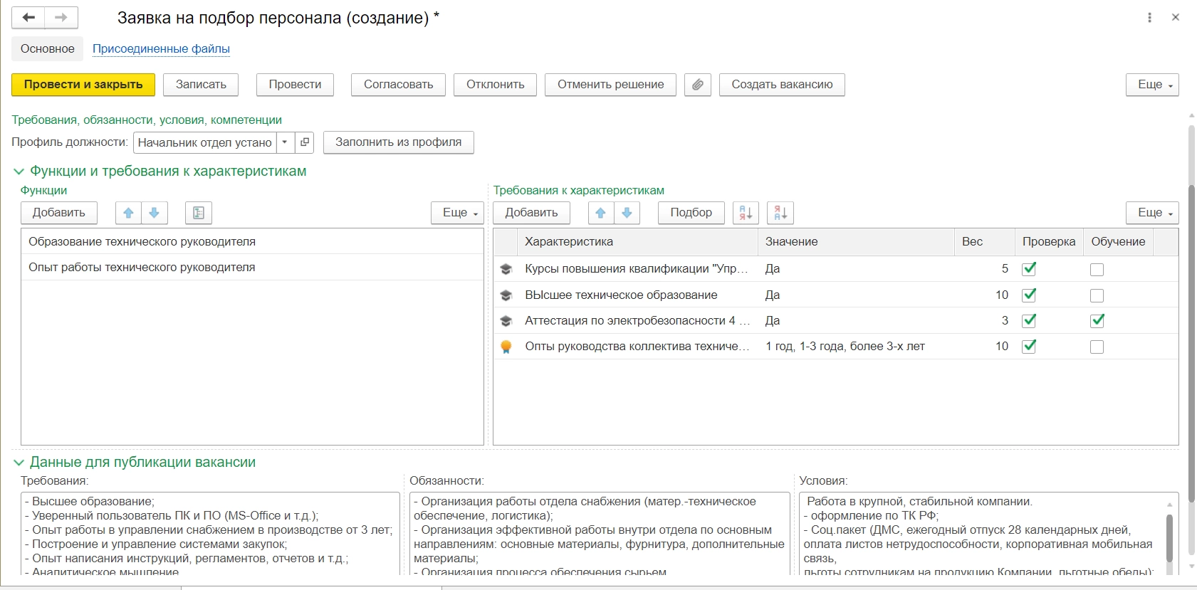 В программе создается заявка на вакансию, где уже описаны основные требования к кандидату: