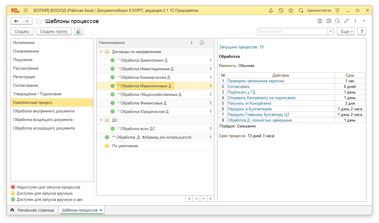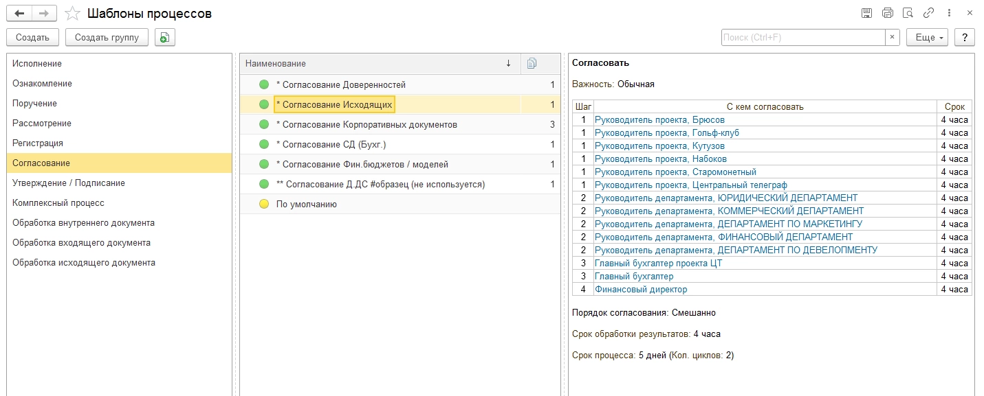 Настроенных шаблонов (маршрутов согласования) в программе «1С:Документооборот 8 КОРП» может быть много: