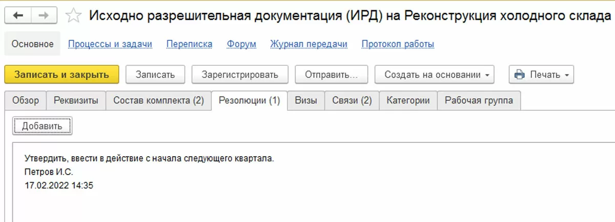 - зарегистрировать документ (ему присваивается номер, и он закрывается от изменений).