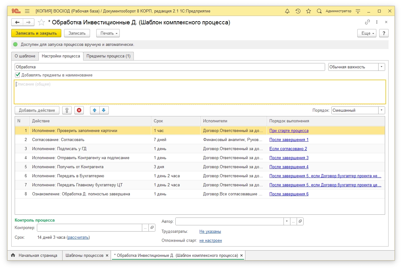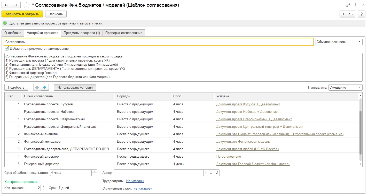 Ниже примеры настройки комплексных процессов с реальных проектов.