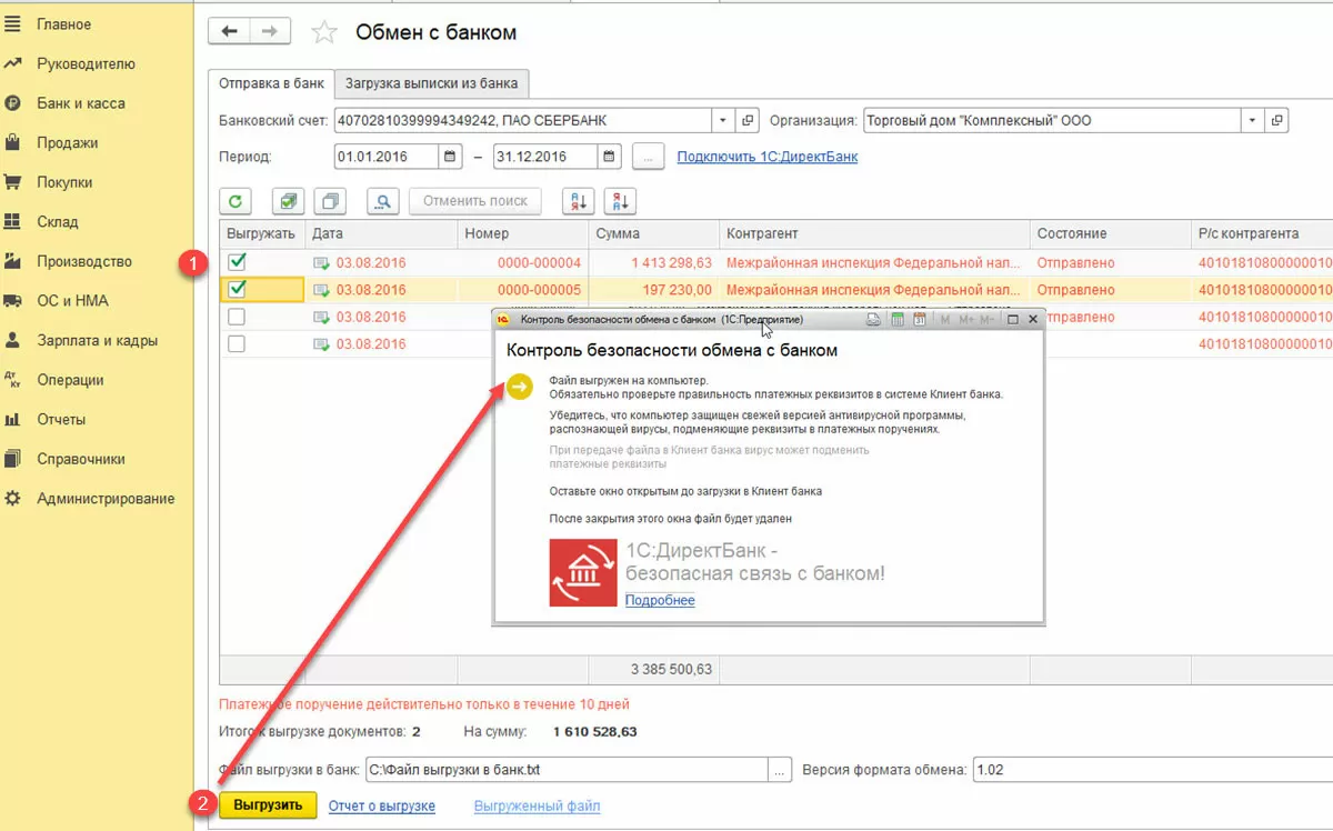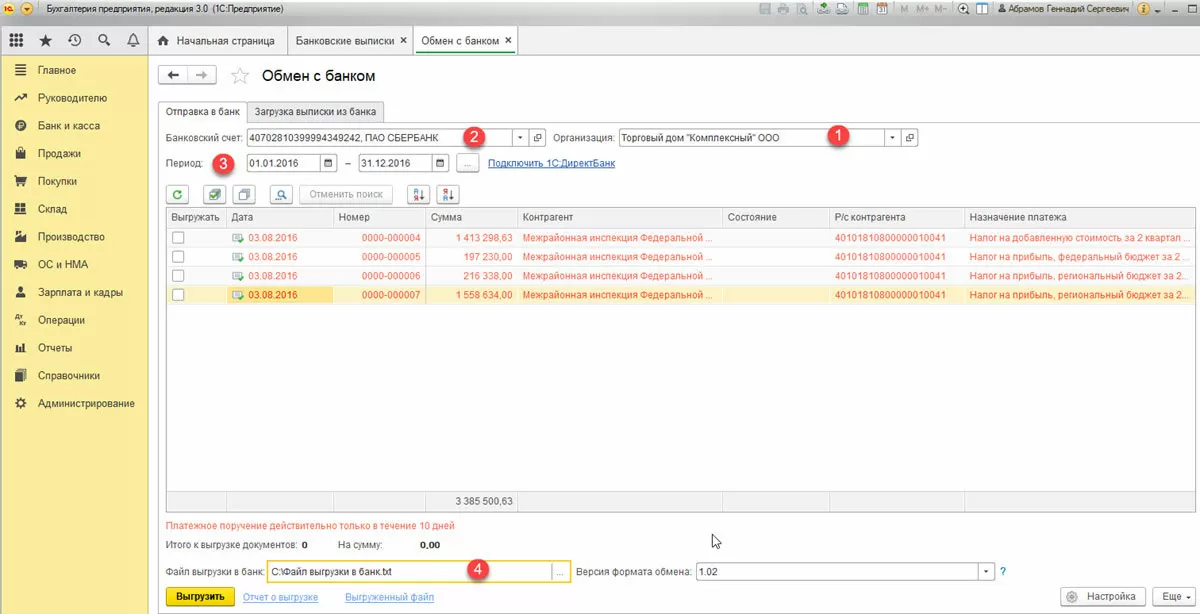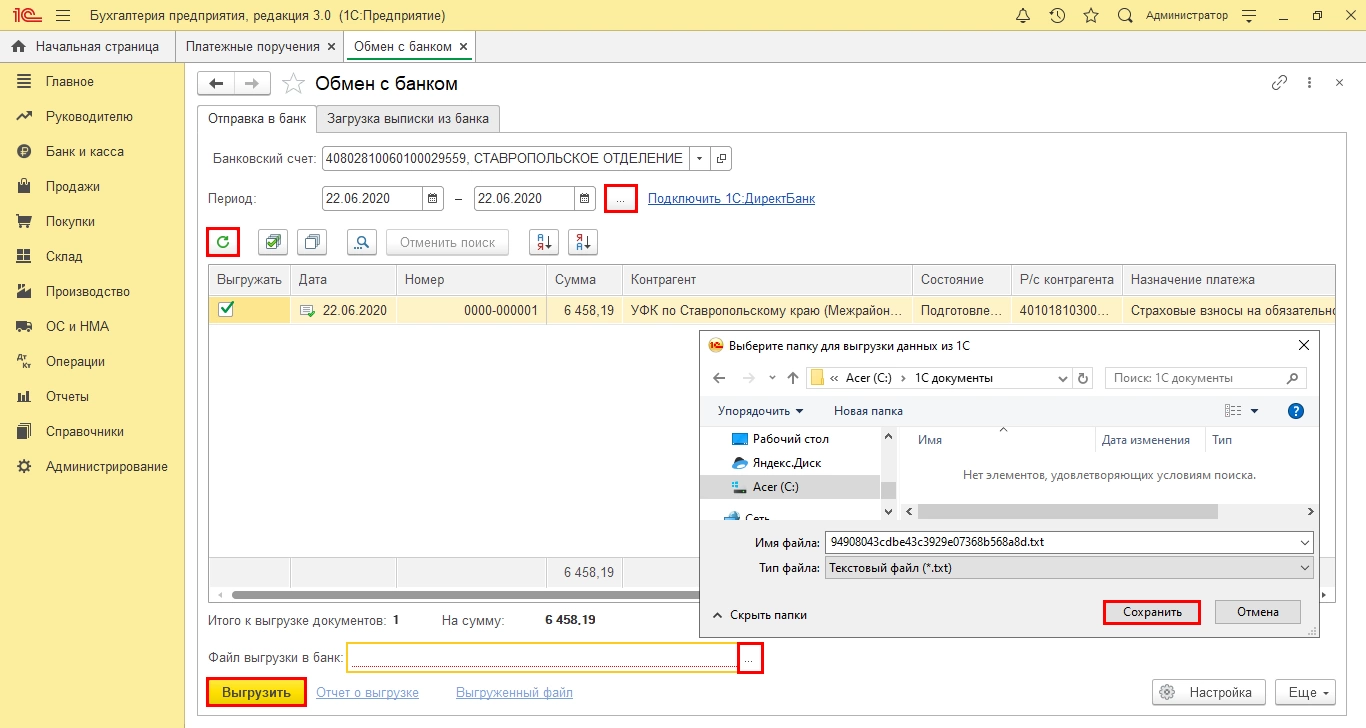 Выгрузка платежных поручений из 1С 8.3 в клиент-банк