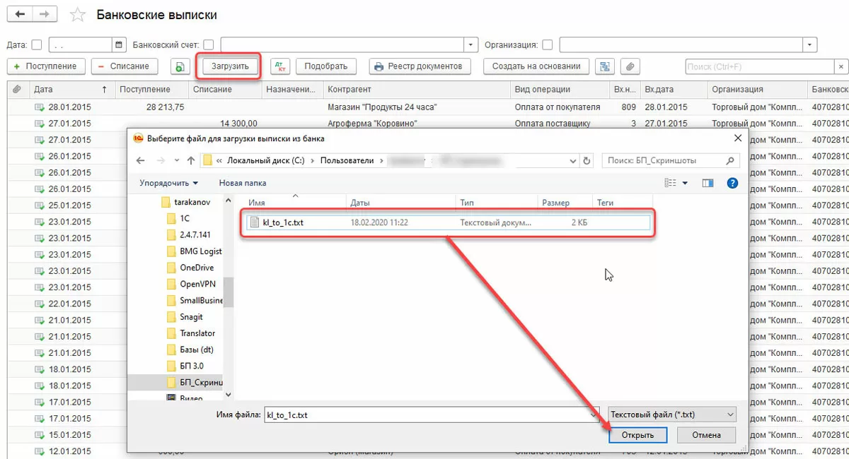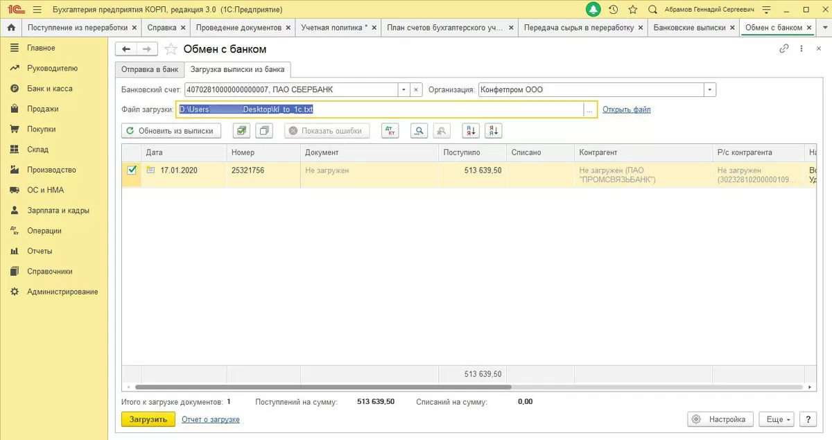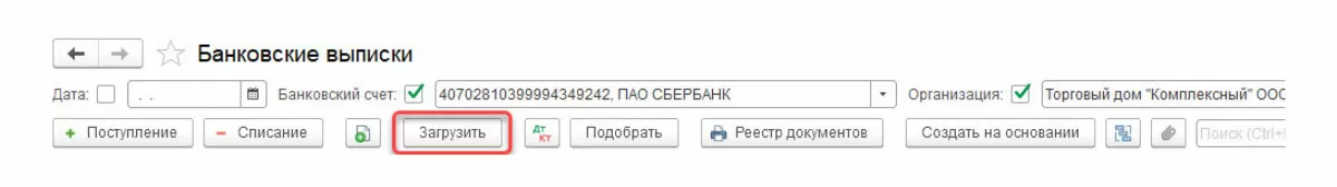 Рассмотрим второй вариант, как загрузить выписки в 1С 8.3.