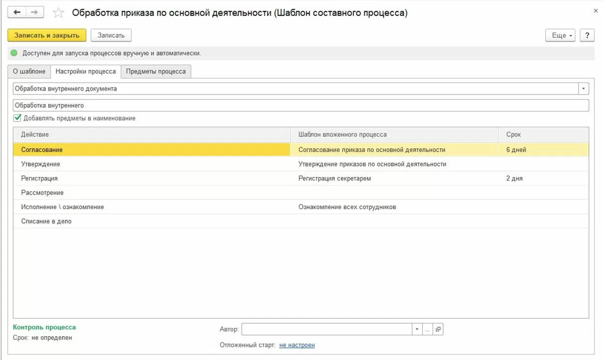 Настройка процессов в 1С Документооборот
