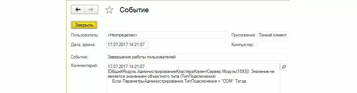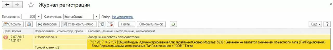 В журнале регистрации появится сообщение о runtime-ошибке, которое следует интерпретировать не как runtime-ошибку, а как «не все пользователи завершили свои сеансы»: