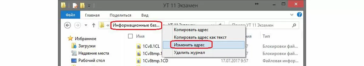 Воспользовавшись одним из предложенных вариантов, вы попадете в окно проводника с расположением информационной базы.